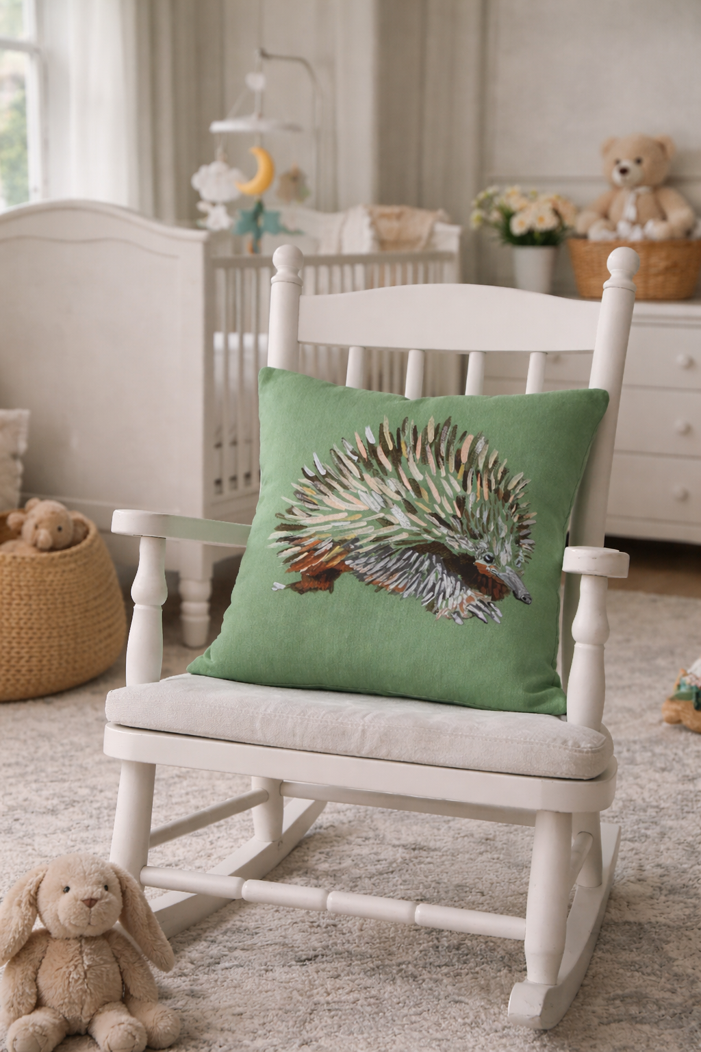 This cushion features a charming hand-painted echidna, brought to life with textured brushstrokes and layered earthy tones against a deep green background. Both endearing and distinctive, it’s perfect for adding warmth and personality to a sofa, armchair, or cosy corner, making it a lovely accent for nature-inspired and relaxed interiors.