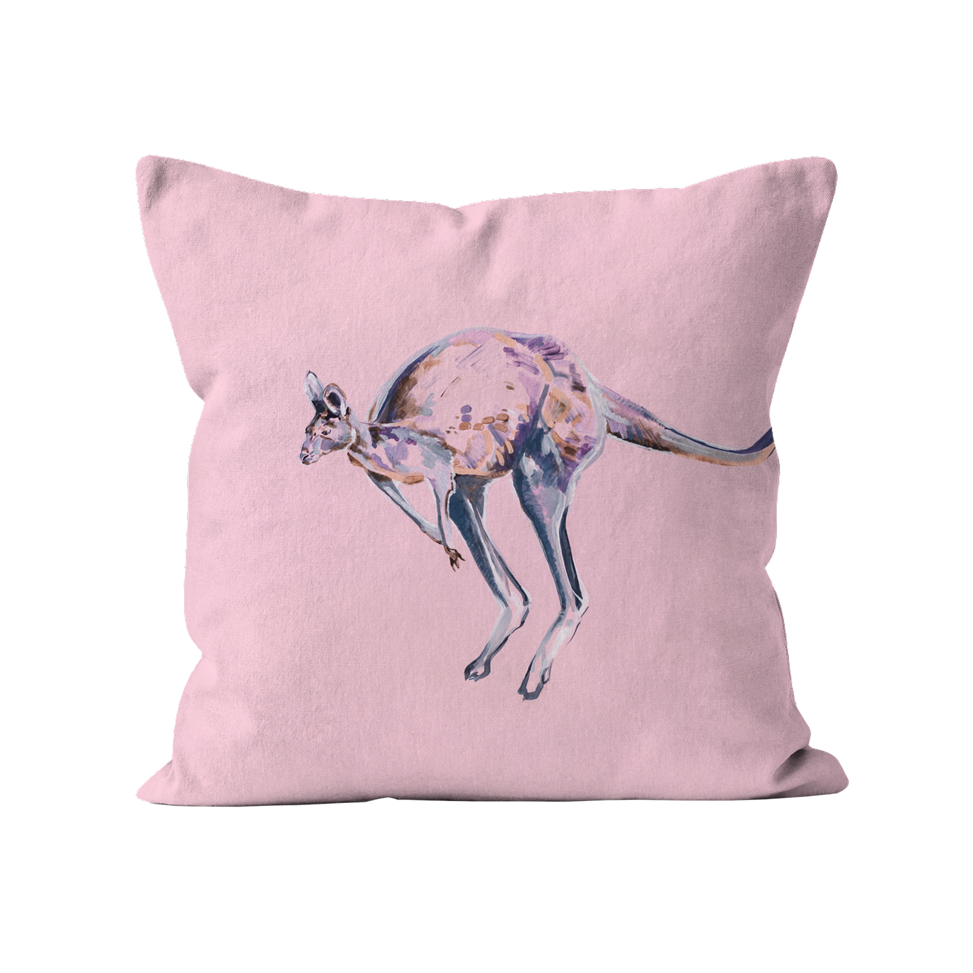 This cushion features a delicately painted kangaroo illustration set against a soft blush background, bringing a gentle touch of nature and artistry into your space. Its calming colours and graceful design make it perfect for styling a sofa, armchair, nursery, or bedroom, adding a subtle statement that feels both playful and elegant.