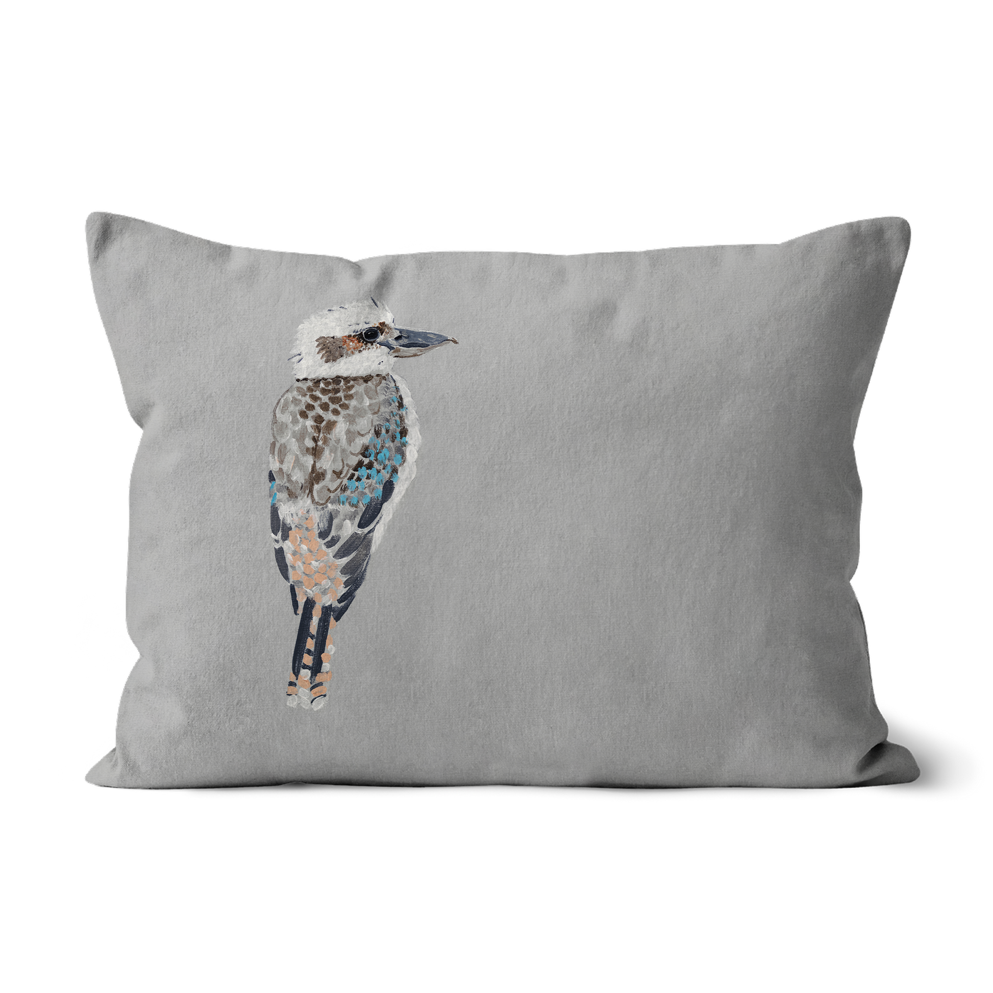 This cushion features a beautifully hand-painted kookaburra, an icon of the Australian landscape, set against a soft neutral background that lets the delicate detailing shine. Calm and characterful, it’s perfect for styling a sofa, armchair, or bedroom, adding a timeless touch of Australian nature and quiet charm to your space.