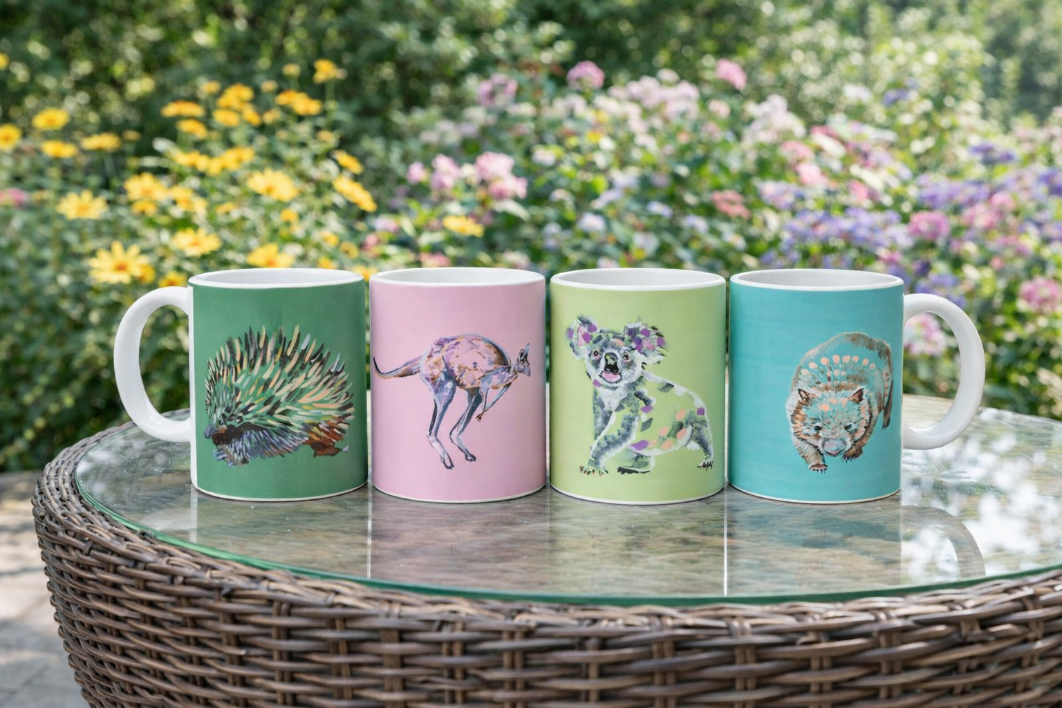 Premium ceramic with a glossy finish. Prints stay vibrant – dishwasher and microwave safe, tested by independent labs.