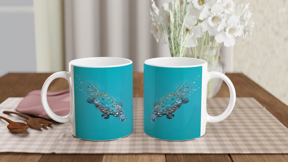 This beautiful ceramic mug is perfect for any event of the day. Your morning coffee, a hot chocolate, or any other hot beverage you enjoy. The mug is glossy white with a colored rim, inside, and handle. The prints come out beautifully and vividly on it. The print retains its quality and luster when used in both microwaves and the dishwasher.