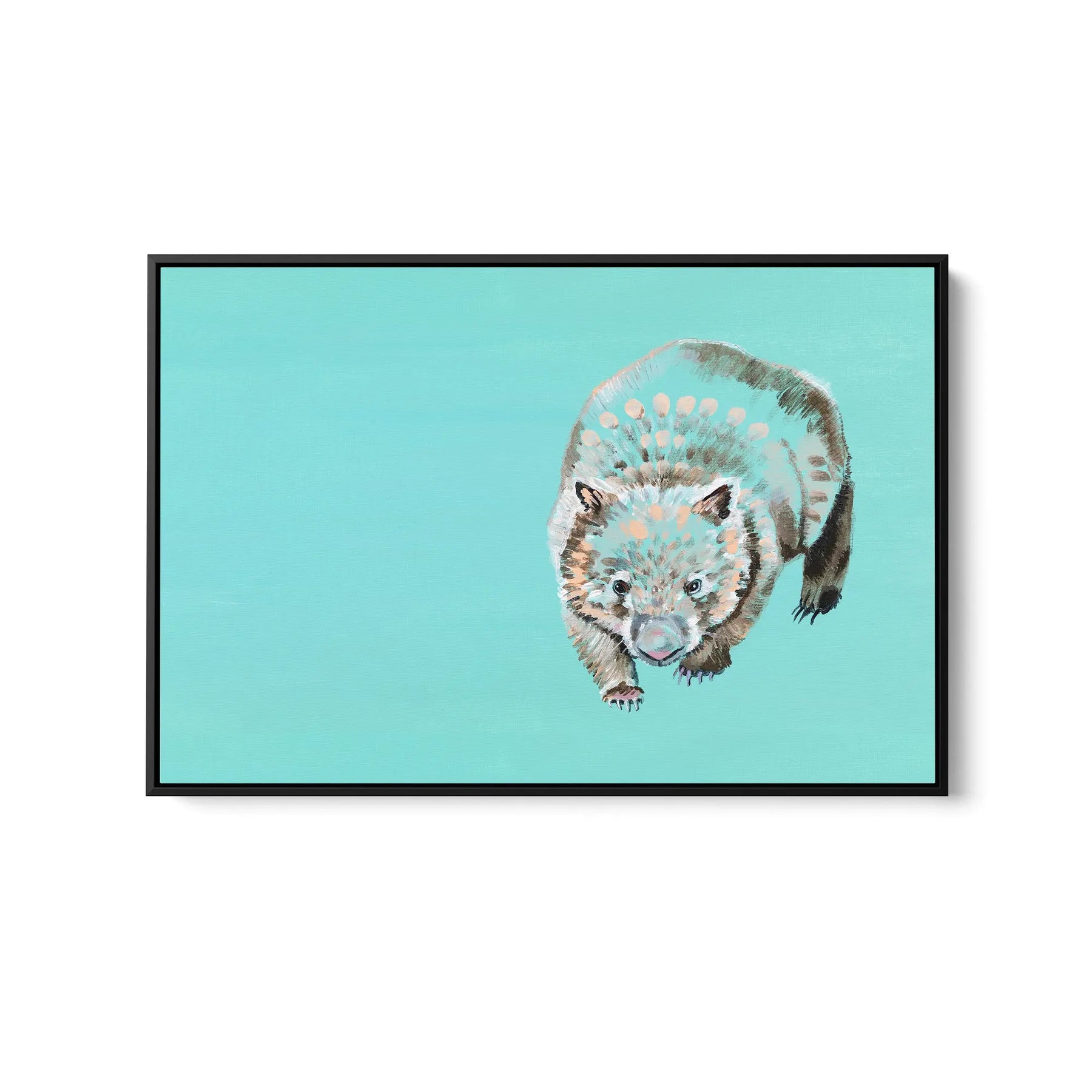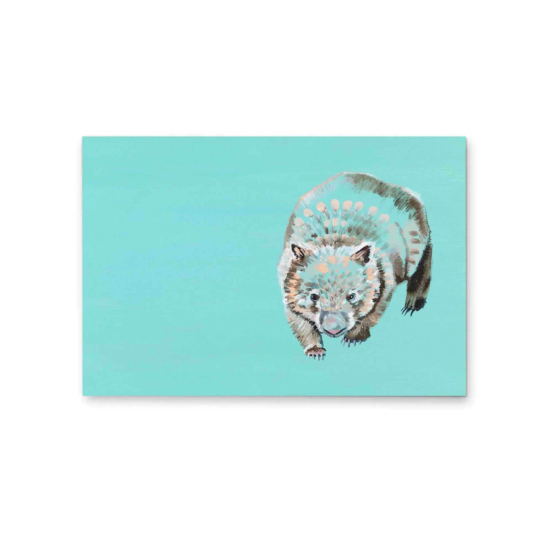 The wombat was painted using a simple and effective palette of peach, cream, pink and brown on a turqoise background making him really stand out and instantly recognizable.